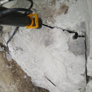But even at this stage, the stones are too large to transport, so more splitters are used for secondary crushing. Larger stones are further crushed to a size of about 1 cubic meter until they can be easily transported off-site. The advantages of this environmentally friendly and controllable method are obvious: it meets the highest requirements because the splitting process is quiet and dust-free, vibration-free. In addition, there is no rock fragment flying nearby.
